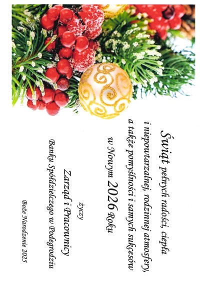 Szanowni Klienci, Informujemy, iż w dniu 31.12.2025 r.